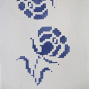Die Arbeit NordSüdOstWest setzt sich zusammen aus einer Wand/Fensterbemalung