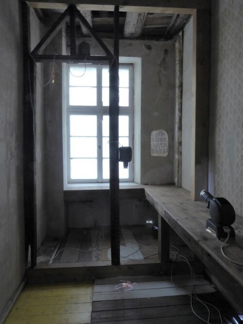 Die Arbeit besteht aus mehreren Projektionen in einem vorgefundenen nur leicht veränderten Raum.